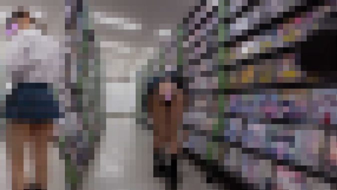 しゃがんで漫画に釘付け状態のエロJKの真後ろから・・・