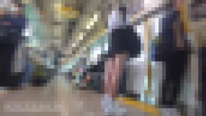 続いてバスを下車したあとは駅に向かう上りエスカレーター。今作最大の見せ場となりますが、リュックを前に抱えてくれていたのと、まさかのノーガードだったため撮れ高は申し分無し。