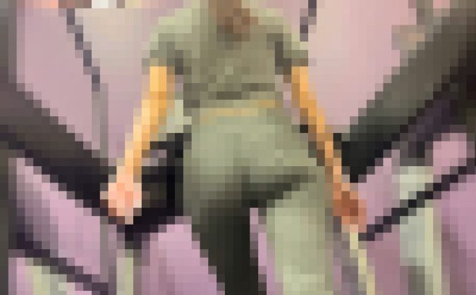 まずは、グレーのスパッツから美巨尻をムニュらせるセレブお姉さんが登場。