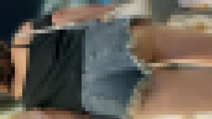 カットオフデニムの切り込みの角度が強く、さらに裾幅もあるため、セクシーなお尻が丸見えです・・・(/ω\)