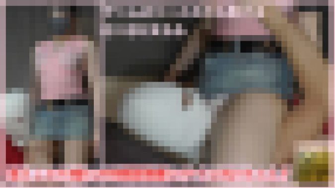 0:00~ 立っているみわちゃんの体を触っていきます。みわちゃんは体を触られると感じて声が出てしまいます。股下0cmの超ミニのデニムスカート