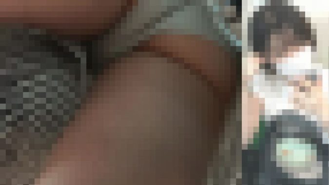 その後、同じ電車に乗り込み、スマホをバッグに仕込んで長時間粘着逆さ撮りを敢行。