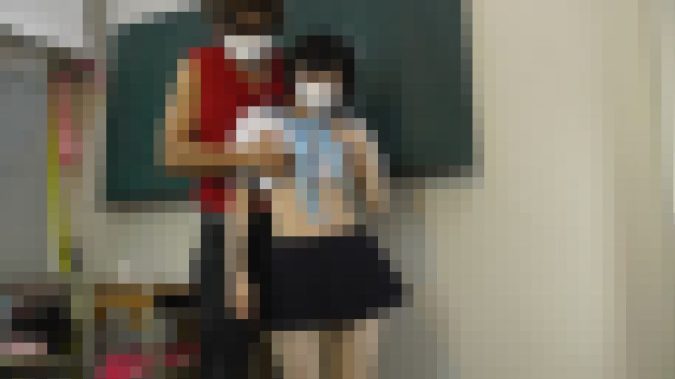 セーラー服の上から奈々ちゃんの胸を触り、太もも、股間、お尻をお触りします。