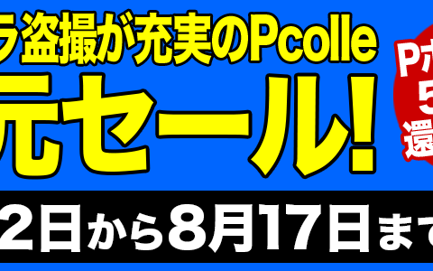 パンチラ盗撮が充実の Pcolle にて、50%ポイント還元セール 開催! セール期間 : 2025年08月12日(火) ~ 2025年08月17日(日…